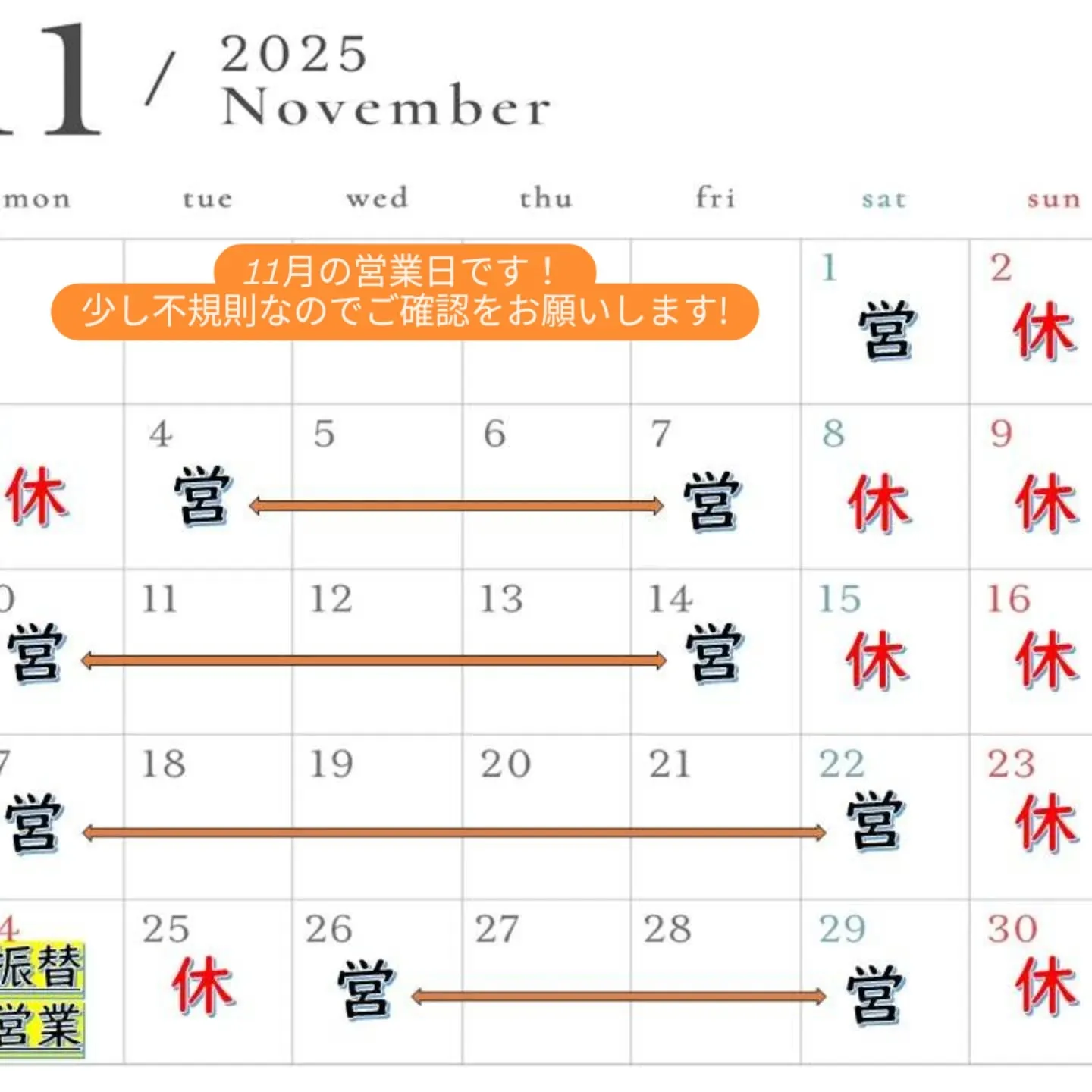 祝日や学会参加のため少し不規則になります。御迷惑をおかけして申し訳ありませんが、ご確認いただき予約のご連絡をいただけますと助かります。